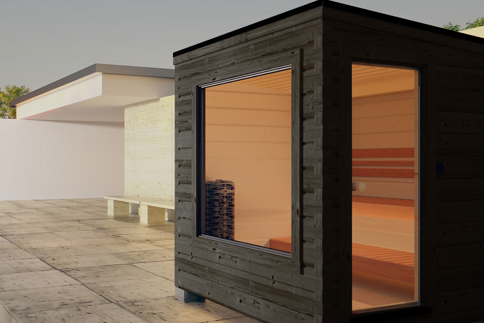 Hetki Sauna Plus. Riktig finsk bastu och ett omklädningsrum i ett. Omklädningsrummet är utrustat med bänk, handdukskrokar, uttag och LED-belysning. Vi levererar Hetki Sauna Plus, precis som våra övriga innergårdsbyggnader, helt klara och efter dina önskemål.